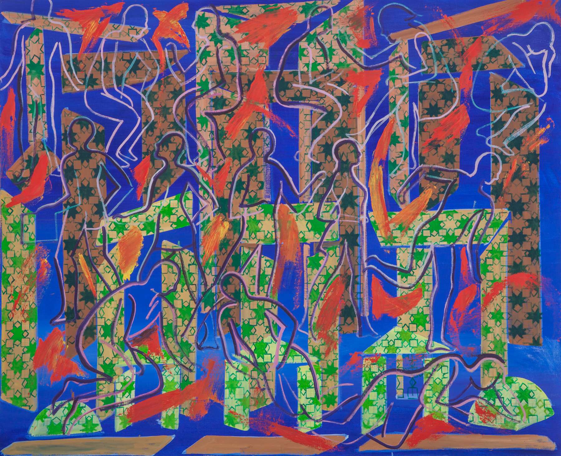 Le dernier travail de Rachid Bouhamidi comprend une synthèse du langage occidentale de la peinture figurative avec des notions du design marocain et orientale. Il utilise des lignes et des motifs pour désorienter le regard classique des œuvres en leur donnant une touche abstraite. La culture marocaine fascine et obsède l’artiste au point de donner à certains sujets classiques, comme la mariée traditionnelle ou les cavaliers de la fantasia, une sorte de grandeur mythique et transcendante. Cette exposition présente également une installation de plus de soixante estampes monotypes pressentant des scènes de la vie au Maroc et aux États Unis.