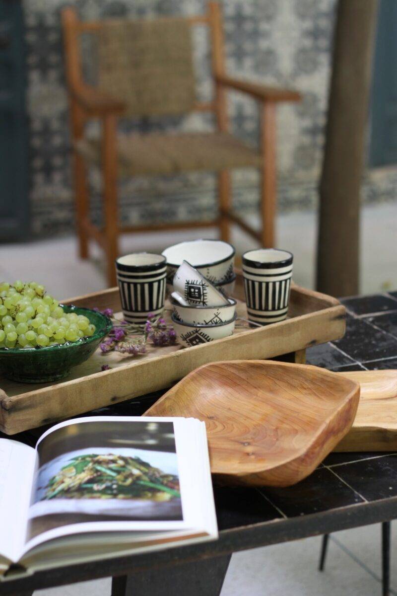 Dar Bouchaïb propose également des antiquités et des pièces uniques que Feu Bouchaïb Benzaitar, en voyageur impénitent, achetait lors de ses nombreux déplacements : meubles syriens incrustés d’os, de nacre et de fils d’étain, masques africains, paravents en laque venant d’Asie… Le rez-de chaussée présente toujours l’apparence d’un souk abritant une multitude d’idées cadeaux pour tous les budgets : épices, senteurs, cosmétiques, céramique, textile, maroquinerie, bijoux… Dar Bouchaïb est également présent dans la médina avec une boutique plus petite baptisée L’appartement 48, entièrement rénovée pour recevoir des tapis et des antiquités. Deux écrins modernisés pour des trésors qui charmeront aussi bien les touristes en quête d’artisanat de qualité et au prix juste, que les décorateurs à la recherche de pièces rares pour meubler des maisons.