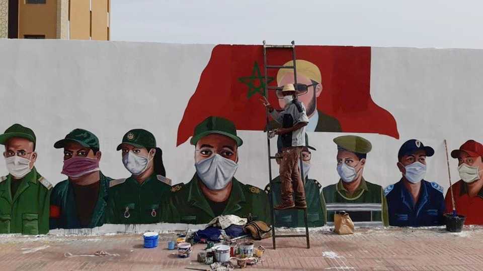 Essaid Ait Bouzid a bravé la chaleur écrasante de la ville ocre durant neuf jours pour habiller ce mur, situé à l’entrée de Ain Itti, de visages symboliques représentant les différents corps de métiers qui se sont investis pour notre sécurité et notre santé durant cette période complexe que l’on vient de traverser.