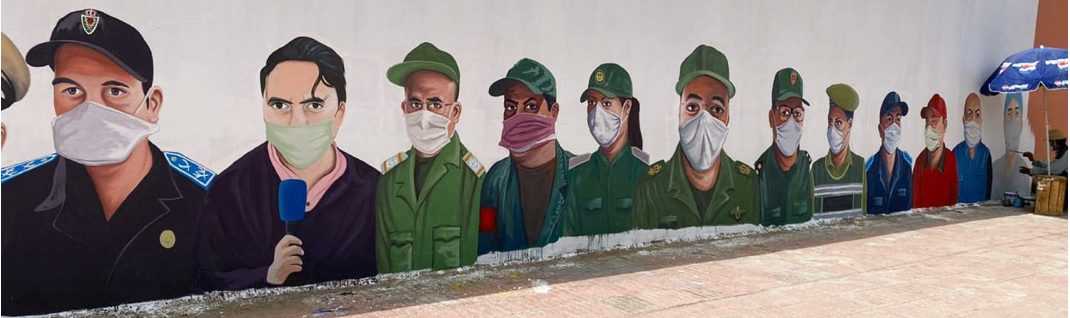 Essaid Ait Bouzid a bravé la chaleur écrasante de la ville ocre durant neuf jours pour habiller ce mur, situé à l’entrée de Ain Itti, de visages symboliques représentant les différents corps de métiers qui se sont investis pour notre sécurité et notre santé durant cette période complexe que l’on vient de traverser.