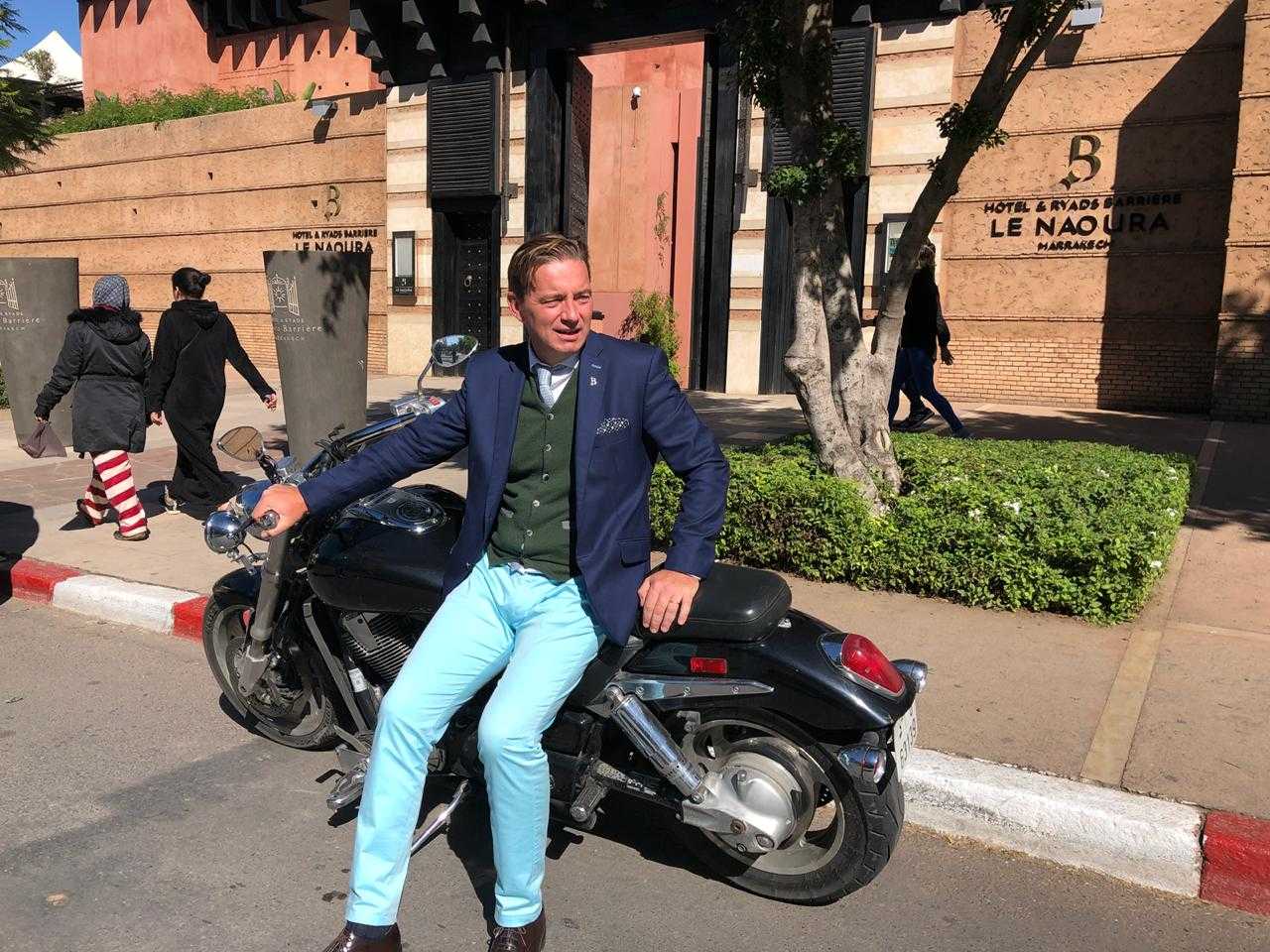 Laurent Garrido, directeur général du Naoura Barrière, est à l’image que l’on se fait des Palaces. Pas ceux aux bars bruyants et aux couloirs arpentés de « socialites ». Non, ces paquebots qui voguent sans bruit, élégants, efficaces. L’homme est charismatique, prévenant, avec un sourire aussi affuté que l’œil qui rajuste à tout moment avec bienveillance. Il faut dire que cet amiral a toujours habilement navigué, départ à quai du Meurice, grande mer au Beach Comber de l’île Maurice ou au Sheraton à Tahiti, eaux de prestige à Évian ou Montreux. En bon hôte, il sait comprendre l’âme de ses hôtels et y apporter sa propre humanité. Le Naoura, au luxe calme et précautionneux, lui va à ravir. Cet établissement, que l’on pense à tort une grosse machine, est un hôtel de 135 chambres, ryads compris, ce qui permet une qualité de service et une dimension familiale, plus humaine et personnalisée. Et c’est bien dans l’esprit de Laurent Garrido, qui lui apporte son coup de patte dans le bon sens du terme. Des touches de couleurs, une tablée pour les copains, un coin sport enthousiaste et décontracté, rendent le bar chaleureux quel que soit le temps. Le Kids Club est accolé à un Club Ado, avec jeux, consoles, Netflix et gros poufs, le directeur connaît bien ses propres enfants… Il ne manque désormais plus un repère de copines au restaurant de la piscine, carte healthy à l’avenant, mais aussi propice aux rendez-vous des golfeurs, appétits dans les talons. Oui, les frites sont à tomber. On ne vous parlera pas des autres restaurants, allez-y entre amis choisis, en famille ou en amoureux, votre hôte connaît la vie. L’homme aime le Maroc qu’il fait découvrir en toute occasion à sa petite famille, et le partage avec des expositions d’artistes qu’il met un point d’honneur à choisir à l’instar de son emblématique porteur d’eau qui vous accueille à l’hôtel, mais surtout dans l’âme de Marrakech. On ne verrait pas l’homme dans un hôtel impersonnel, loin du cœur et de l’âme de Marrakech. Le Naoura, idéalement situé à l’une des plus enchanteresses portes de la Médina, lui va comme un gant. Et il le gère sur du velours grâce à une équipe efficace et aux petits soins. Pour preuve sa magique concierge, Khadija Kaou, première femme Clé d’or au Maroc. Mais surtout, l’homme a de l’humour, un Paris-Marrakech vous changera de Brest avec Amlou, et est entier, son dessert préféré est à la carte, un Concorde. Laurent Garrido est un amiral, on vous l’a dit, avec ami dedans. Et si d’aventure vous le voyez sur une Harley, soyez rassuré, il sait aussi bien se faire voguer.