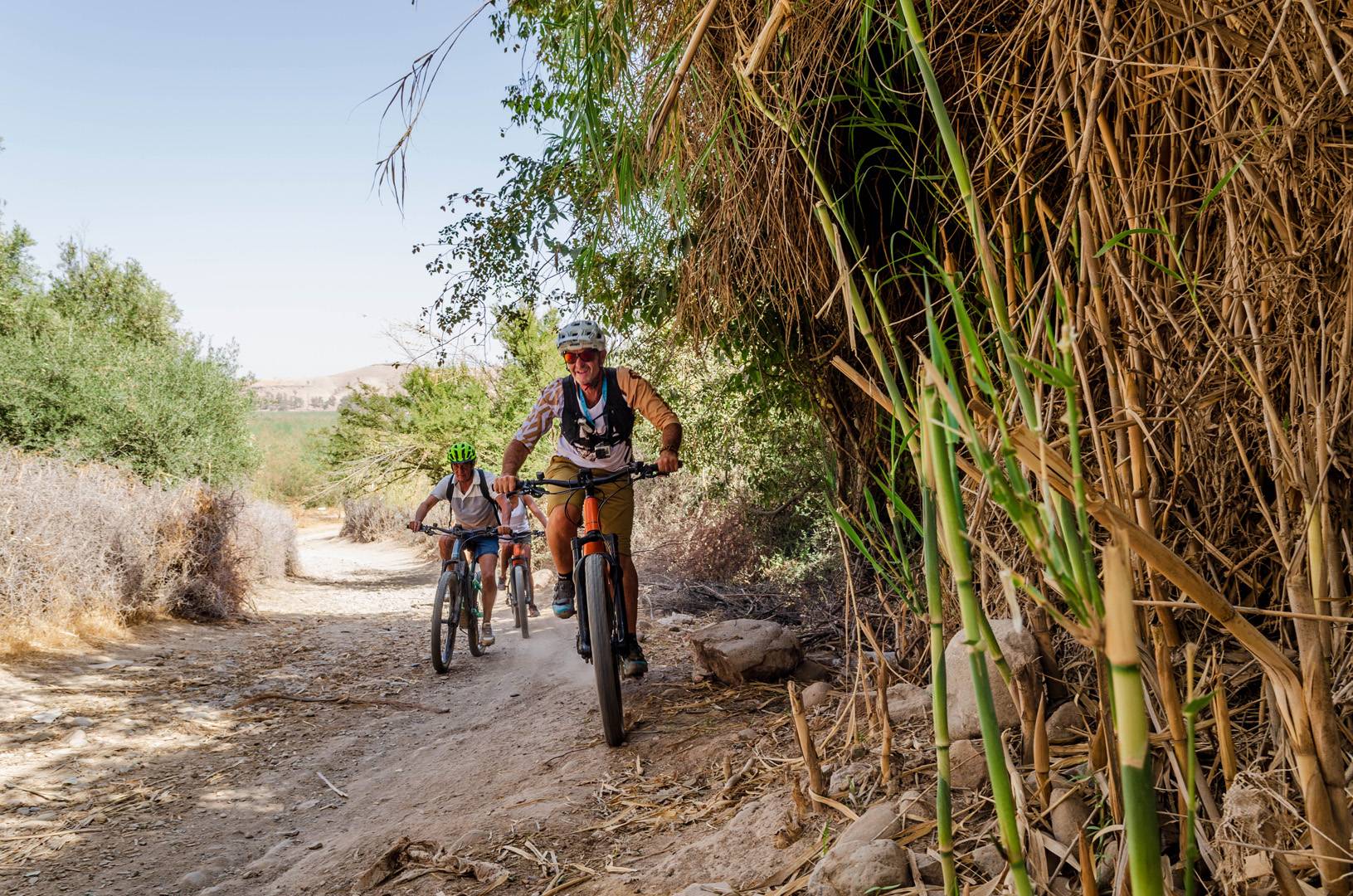 Cette région aux panoramas majestueux est en effet propice à tous les styles de parcours. Fly me to the Moon (c’est le nom de leur société) propose ainsi plusieurs itinéraires qui varient en fonction du niveau – il n’est pas nécessaire d’avoir une grande condition physique – mais aussi des envies de chacun. Car sur place, les décors y sont également très variés, à l’image de la forêt d’eucalyptus que l’on peut apercevoir depuis l’agréable éco-village où ont lieu tous les départs. « L’avantage, en étant ici, c’est qu’on peut multiplier les points de vue. On peut s’évader facilement dans le désert, dans des canyons, rejoindre des single tracks qui filent vers la belle région du lac, faire du hors-piste ou pourquoi pas faire un circuit sur plusieurs jours dans les contreforts de l’Atlas. Tout est possible, y compris de profiter d’un service de restauration durant le circuit », argue Jorg pour qui chaque détail compte. Un souci de plus qui a définitivement fini de nous convaincre : l’E-bike village de nos deux retraités suisses a son avenir tout tracé.