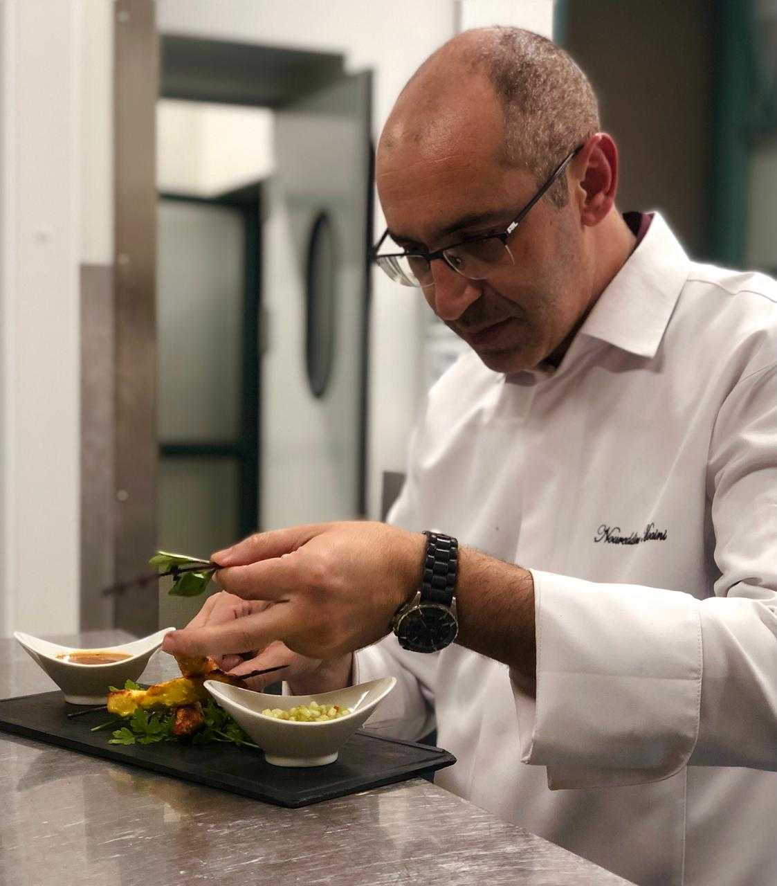 L’hôtel les Deux Tours et ses 3 hectares de jardins andalous, bassins et chantantes fontaines vous emportaient déjà en pleine Palmeraie dans un véritable «rêve d’Orient», avec ses terrasses et son cadre majestueux. Le chaleureux et précieux restaurant Le Salammbô, vous invitera dès mi-décembre, avec sa nouvelle carte, à un véritable tour de «l’Orientalisme». «D’ici et d’ailleurs», avec l’Orient jusqu’en Thaïlande comme ligne de fond, la modernité et l’inventivité comme chant. Tout se répond, tout s’accorde. Dès les entrées, on passe par les classiques d’ici : briouates, sélection de salades marocaines entre cru et cuit, réconfortante harira avec ses chebakia, pastilla de fruits de mer. Du côté méditerranéen, on retrouve des touches de pesto, de caviar d’aubergine, mais aussi de jolies surprises : foie gras poêlé aux fraises, asperges vertes et jus