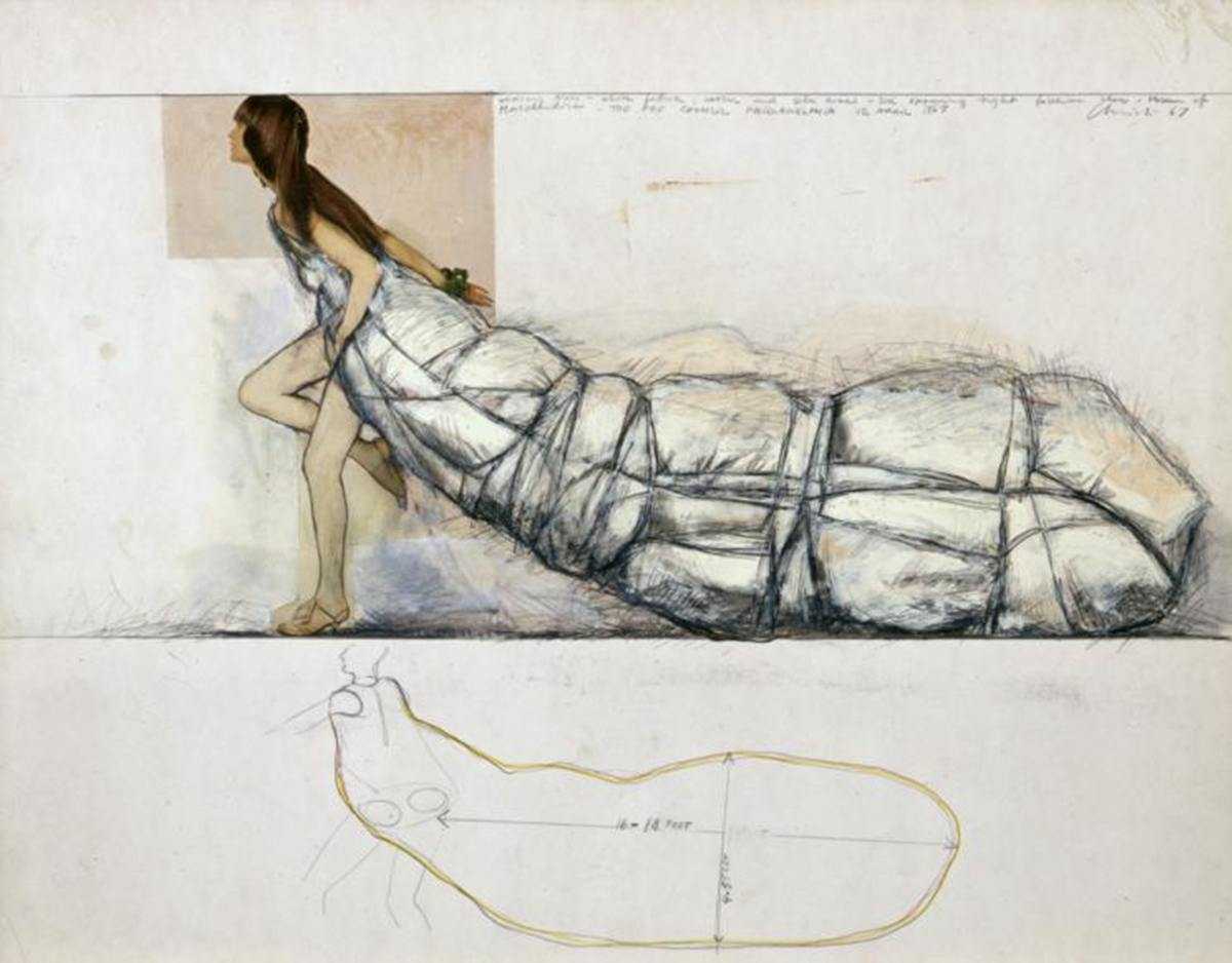 Il s’agit de sa première exposition monographique au Maroc. Des oeuvres liées à la femme et à la mode, réalisées entre 1962 et 1968. Des collages et des dessins préparatoires, dont des inédits, et l’emblématique sculpture “Wedding dress” créée en 1967. Le visiteur comprend mieux ainsi le processus de création de Christo. Les dessins retracent la genèse et l’évolution de ses idées, et montrent comment ces femmes, une fois empaquetées, revêtent la forme de sculptures classiques.