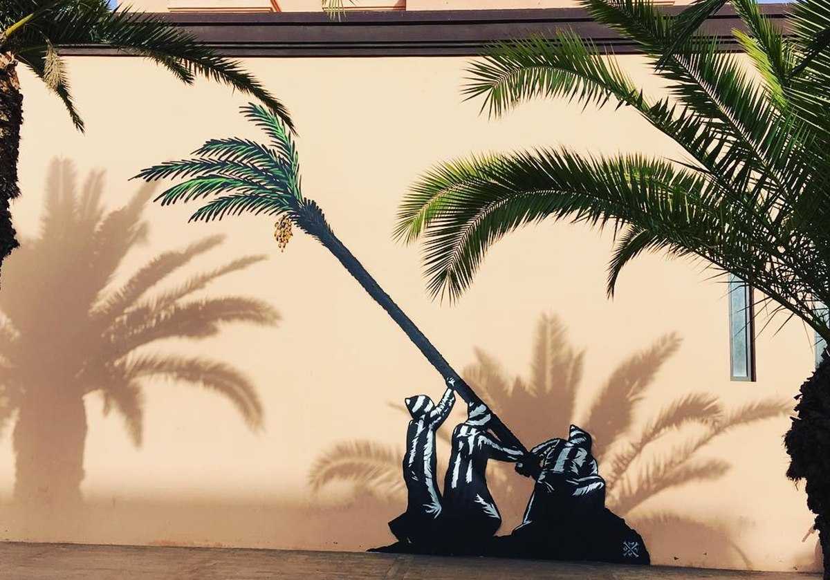 L’artiste street art bruxellois, Monk, offre au Mövenpick Marrakech un petit brin de folie. Pour sa 2è résidence, il a laissé sa joyeuse trace sur les murs des jardins de l’hôtel.