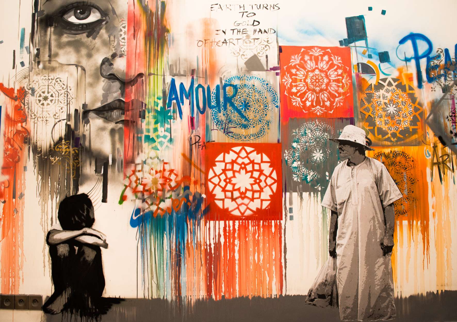 Il avait déjà pris d’assaut les murs de l’hôtel en 2018. Hicham Bellaghzal est de retour au Mövenpick Marrakech avec lecollectif 400ML pour sa deuxième résidence artistique. Cet été, il est à l’oeuvre pour réaliser de nouvelles fresques et tableaux, qui seront présentés à la rentrée. Ce street-artiste, natif de Marrakech, est un amoureux du dessin et de la calligraphie depuis son plus jeune âge. Aux côtés de son collectif 400ML, dont font notamment partie Mchimich et Laaouina, il anime les murs, les façades et les escaliers de l’établissement hôtelier du centre ville entre pochoirs, fresques, graff, calligraphie, portraits et tableaux pour des oeuvres permanentes de street-art à la sauce orientale.